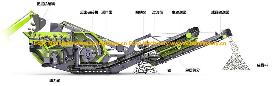 移動反擊破工程機械設備用于礦物原材料加工和建筑材料再生的履帶移動顎式破碎設備、反擊式破碎設備、圓錐式破碎設備和篩分設備。